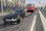 Երևանում «BMW»-ն դուրս է եկել երթևեկելի գոտուց, բախվել բազալտե եզրաքարին, հայտնվել ճանապարհի մեջտեղում