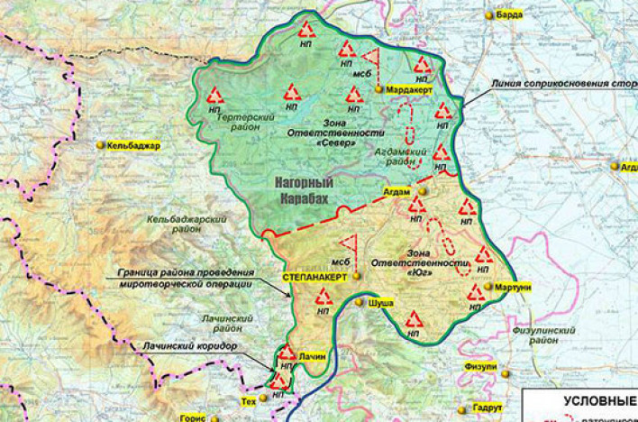 Ռուսաստանի ՊՆ-ն ցույց է տվել Ղարաբաղում խաղաղապահ առաքելության քարտեզները. Լուսանկար