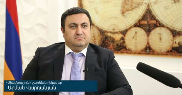 «Միասնություն» շարժման ղեկավար Արման Վարդանյանը Ֆեյսբուքի իր էջում տեսանյութ է հրապարակել և կից գրել.