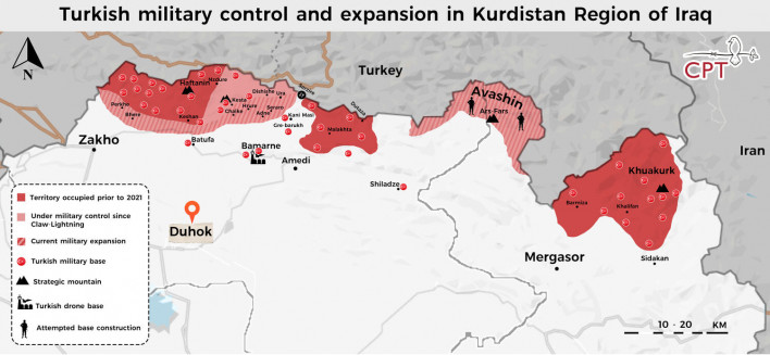 2021թ. ապրիլից Թուրքիայի զինված ուժերը նոր ռազմագործողություն են իրականացնում Իրաքի տարածքում, որի արդյունքում արդեն իսկ գրավված է 40 կմ քառակուսի տարածք (նշված է կարմիրով), 22 իրաքյան գյուղի բնակիչ (մոտ 1500 մարդ) բռնագաղթվել է, ավերվել են տեղական տնտեսությունը։ Սրան զուգահեռ թուրքական բանակը նվաճված տարածքներում կառուցում է նոր ճանապարհներ դեպի իրենց դիրքեր ու բազաներ (և կտրում է անտառները, որպեսզի զրկի քրդերին դիմադրություն ցույց տալու հնարավորությունից)։