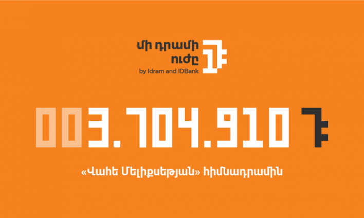 IDBank-ի և Իդրամի՝ «Մի դրամի ուժը» նախաձեռնությունն ամփոփեց հերթական ծրագիրը․ օգտատերերի վճարումներից օգոստոս ամսվա ընթացքում կուտակված «մի դրամների» ամբողջ գումարը՝ 3.701.910 ՀՀ դրամ, փոխանցվեց «Վահե Մելիքսեթյան» հիմնադրամին։
