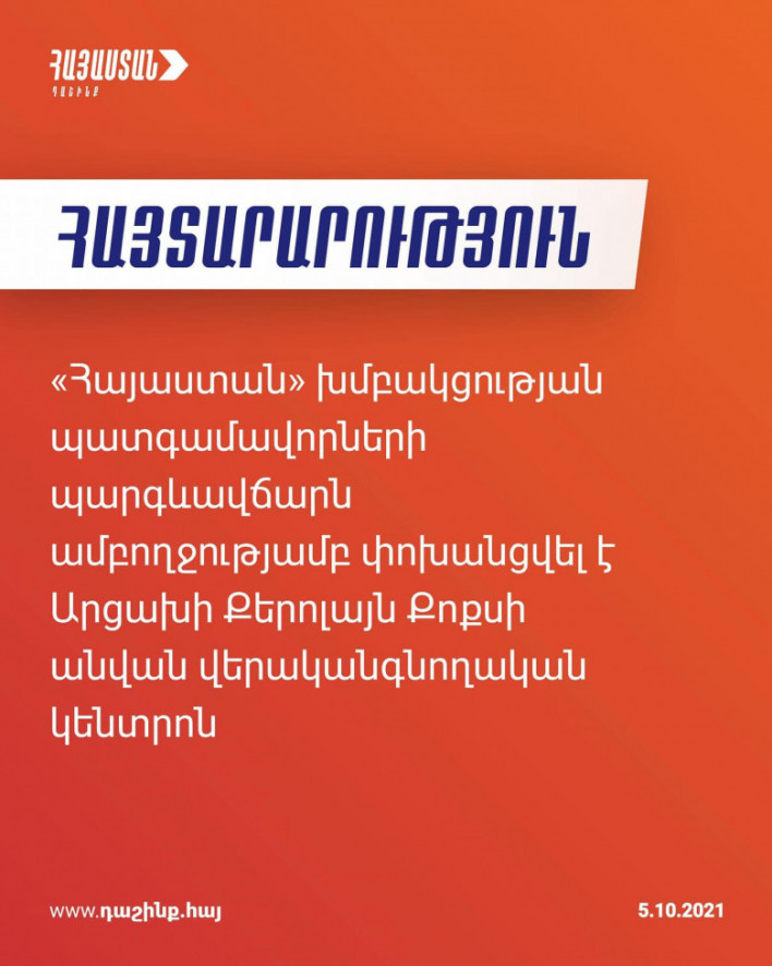 «Հայաստան» խմբակցությունը նախապես հայտարարել էր, որ պետական, քաղաքական պաշտոններ զբաղեցնողներին պարգևատրում տրամադրելու` ակնհայտ անհամաչափ և սոցիալ-տնտեսական այս բարդ պայմաններում խայտառակ պրակտիկան անընդունելի է: Հայտնել էինք, որ այս հարցով նախապատրաստվելու է Սահմանադրական դատարանին հասցեագրված դիմում: Տեղեկացնում ենք, որ այս ընթացքում քննարկվել էր նաև պատգամավորներին 250 000 դրամ փոխհատուցման վճարի տրամադրման մասին վերջերս ընդունված օրենքի խնդիրը: Արդյունքում` արդեն մշակվել է պարգևատրումների և պատգամավորներին հատկացվող 250000 ՀՀ դրամ փոխհատուցման վճարի վերաբերյալ ՍԴ դիմումը և պատգամավորների 1/5-րդի ստորագրությունների պատրաստ լինելուն պես կմուտքագրվի Սահմանադրական դատարան: Հայտնում ենք նաեւ, որ ՀՀ Անկախության 30-ամյակի կապակցությամբ տրամադրված պարգեւավճարների գումարն ամբողջությամբ՝ 10 740 000 դրամ, «Հայաստան» խմբակցությունը փոխանցել է Արցախում զինվորների համար գործող՝ Քերոլայն Քոքսի անվան վերականգնողական կենտրոն։