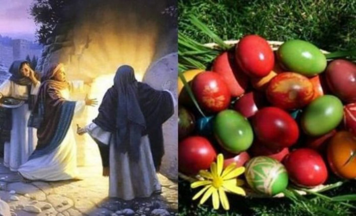 Հիսուս Քրիստոսի խաչելությունից և մահից հետո` երեկոյան, բարեպաշտ մարդիկ նրա մարմինը իջեցրին խաչից և դրեցին վիմափոր գերեզմանի մեջ՝ փակելով մեծ քարով: Երեք օր հետո` կիրակի առավոտյան, յուղաբեր կանայք` Մարիամ Մագդաղենացին, Հակոբի մայր Մարիամը և Սողոմեն, գնացին գերեզման՝ անուշաբույր յուղերով օծելու Քրիստոսի մարմինը, սակայն զարմանքով տեսան, որ քարայրի մուտքի քարը հեռացված է, իսկ գերեզմանը` թափուր: Մինչ նրանք տարակուսում էին, երևացին երկու հրեշտակ և ասացին. «Ինչո՞ւ եք ողջին մեռելների մեջ փնտրում: Այստեղ չէ, այլ Հարություն առավ»: