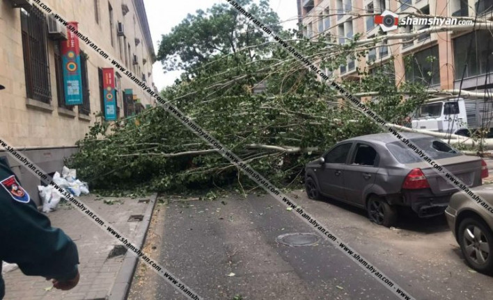 Քիչ առաջ արտակարգ դեպք է տեղի ունեցել Երևանում։ Արամի փողոցում հսկայական բարդին արմատից պոկվել և տապալվել է։