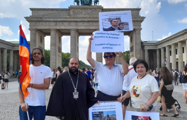 Բեռլինում օրերս ուշագրավ բողոքի ակցիա է տեղի ունեցել Բրանդենբուրգյան դարպասների մոտ։ Հայ համայնքի մի խումբ ներկայացուցիչներ պաստառներով ակցիա են արել ընդդեմ Բերձորի և Աղավնոյի էթնիկ զտումների, նաև ի պաշտպանություն Հայաստանի քաղբանտարկյալների։ Նրանք կոչ են արել դադարեցնել էթնիկ զտումները Բերձորում և Աղավնոյում, դադարեցնել մշակութային արժեքների և խաչքարերի ոչնչացումը, նաև արգելափակել Իլհամ Ալիևի և Նիկոլ Փաշինյանի անձնական հաշիվները Եվրոպական միությունում։