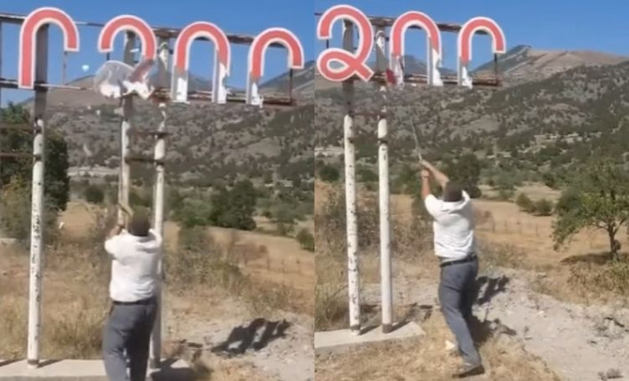 Ադրբեջանցիները կոտրել են Բերձոր քաղաքի անվանական գրությունը․ տեսանյութ