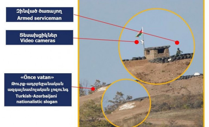 Ի՞նչ գործ ունի այս ազգայնամոլական լոզունգը, առավել ևս ադրբեջանական անօրինական զինված տեղակայումը Շուռնուխի դպրոցի անմիջապես դիմաց: