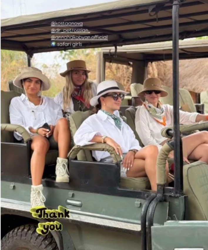 Մեր ուշադրությունը գրավեց լուսանկարներից մեկը, որը մակագրված է «Ես և իմ լավագույն ընկերները»: Տանզանիայի խոշորագույն՝ Nyerere National Park-ում արված լուսանկարում Աննա Հակոբյանից ու Մարիամ Փաշինյանից զատ ևս երկու կանայք են: Իսկ ովքե՞ր էին նրանք: Դա ճշտելը մեծ բարդություն չէր ներկայացնում, որովհետև «Սաֆարիի աղջիկները» նշումից զատ, նկարի վրա արված էր մի քանի «թեգ»: Պարզվեց՝ խոսքը բժիշկ Գոհար Պետրոսյանի ու նրա դստեր՝ Լինդա Կոստանովայի մասին է: