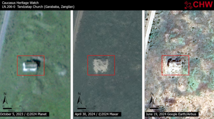 Արբանյակային պատկերները ցույց են տալիս, որ 2023 թվականի հոկտեմբերի 5-ից մինչև 2024 թվականի ապրիլի 30-ը Արցախի Հանրապետության Կովսական շրջանի 19–րդ դարի Տանձատափ եկեղեցու մեծ մասը վնաս է կրել: Այս մասին ահազանգում է և լուսանկարներ ներկայացնում Caucasus Heritage Watch-ը։