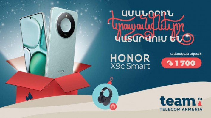 Team Telecom Armenia-ն հայտարարում է ամանորյա ակցիա՝ Honor X9c Smart մոդել ձեռք բերելու համար՝ սկսած ամսական ընդամենը 1670 դրամից: Team-ն առաջինն է տարածաշրջանում, որ մեկնարկել է այս նորագույն մոդելի վաճառքը մեր պաշտոնական գործընկեր Honor-ի հետ: