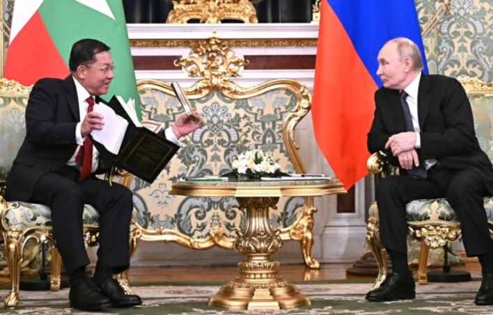 ՌԴ նախագահ Վլադիմիր Պուտինը Կրեմլում բանակցություններ է վարել Մյանմարի վարչապետի և Պետական վարչական խորհրդի նախագահ գեներալ Մին Աուն Հլաինգի հետ։ Բանակցությունների ընթացում վերջինս Պուտինին անվանել է Ռուսաստանի թագավոր, գրում է vedomosti.ru-ն: