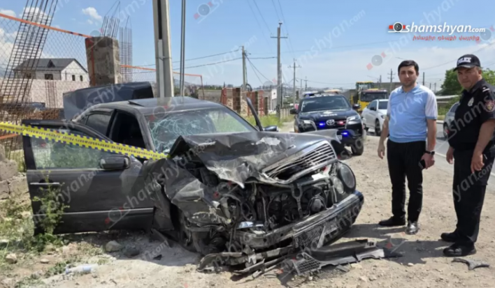 Բախման հետևանքով «Mercedes»-ներից մեկը դուրս է եկել երթևեկելի գոտուց և բախվել բետոնե էլեկտրասյանն ու բնակչի տան քարե և ցանցե պարսպին: