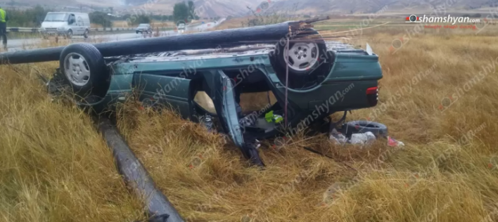Լոռիում «Mercedes»-ը բախվել է էլեկտրասյանը, կոտրել այն և գլխիվայր հայտնվել դաշտում