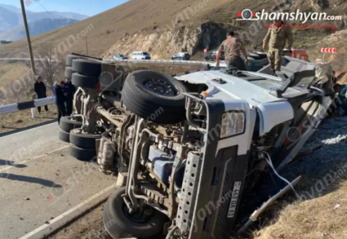 Բերդ-Ճամբարակ ճանապարհին «SHACMAN» բեռնատարը դուրս է եկել երթևեկելի գոտուց և կողաշրջվել