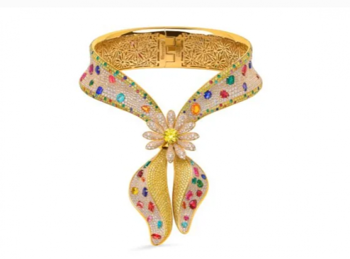 Այս քանդակագործական աշխատանքը վերաիմաստավորում է G-DRAGON-ի ստորագրության բանդանայի ոճը՝ այն վերածելով բարձրակարգ ոսկերչական աշխարհի համարձակ գեղարվեստական հայտարարության: Պատրաստված 559.3 գրամ 18 կարատ դեղին ոսկուց, օձիքը զարդարված է տպավորիչ 209.71 կարատ թանկարժեք քարերով, այդ թվում՝ կենտրոնում գտնվող 5.40 կարատանոց Fancy Yellow ադամանդով:
