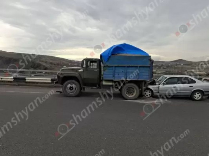 Աշտարակի կամրջի վրա «BMW»-ն բախվել է ավազով բարձված «ԶԻԼ» բեռնատարի հետնամասին․ կա վիրավոր