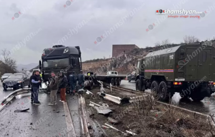 Կոտայքում բեռնատարը կոտրել է բաժանարար գոտում տեղադրված երկաթե արգելապատնեշները