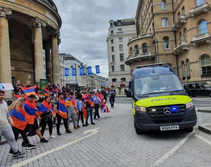 Նրանք ռազմահայրենասիրական երգերի ներքո ծածանել են Հայաստանի և Արցախի դրոշներն ու ընդգծել, որ բրիտանական հանրությունն արժանի է իմանալու ճշմարտությունը, և BBC-ին պետք է դադարի թաքցնել այն: