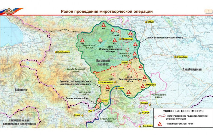 Ռուսաստանի Պաշտպանության նախարարությունը ներկայացրել է քարտեզը, թե Արցախում որ մասում են տեղակայվելու ռուս խաղաղապահները: