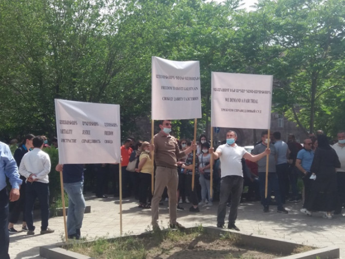 Վերաքննիչ դատարանի բակում հավաքվել էին Դավիթ Գալստյանի հարազատները, նրա ընկերությունների աշխատակիցները՝ ցույց տալու իրենց աջակցությունը:
