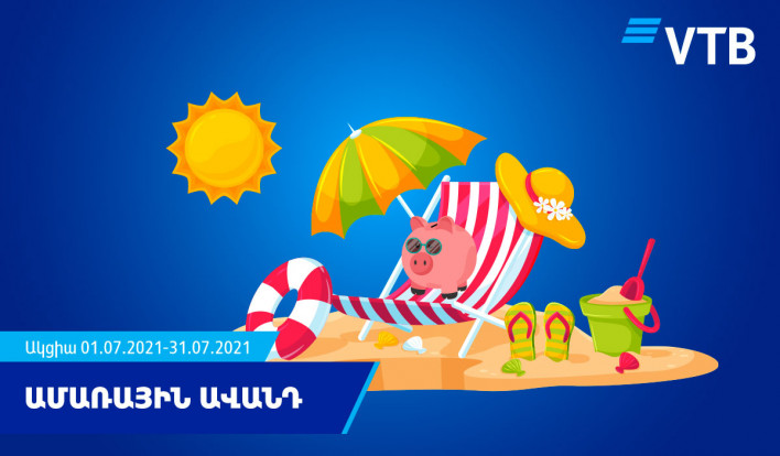 ՎՏԲ-Հայաստան Բանկը 2021թ․ հուլիսի 1-ից մեկնարկում է «Ամառային ավանդ» ակցիան և առաջարկում է հաճախորդներին մինչև 2021թ․հուլիսի 31-ը ձևակերպել ՀՀ դրամով ավանդ՝ շահավետ պայմաններով: