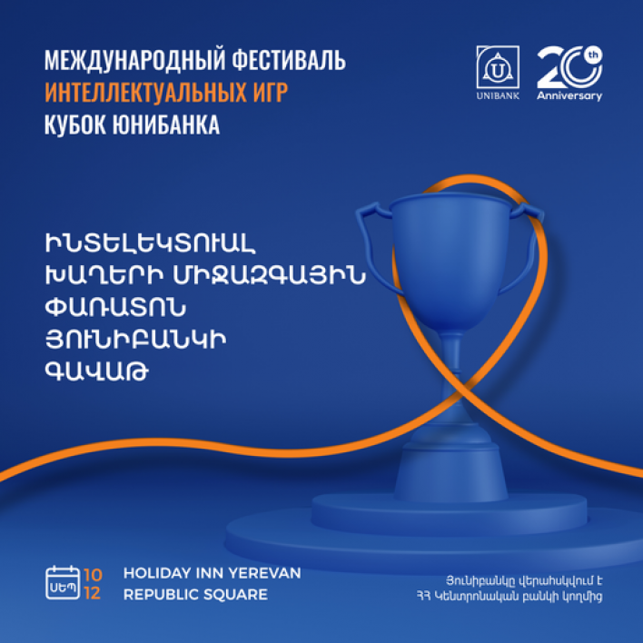 2021թ.-ի սեպտեմբերի 10-12-ը Երևանում տեղի կունենա «Յունիբանկի գավաթ» ինտելեկտուալ խաղերի միջազգային փառատոն: Միջոցառումը նվիրված է Յունիբանկի գործունեության 20-ամյակին: