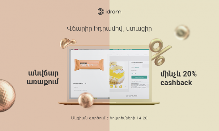 Եթե սիրում եք առցանց խանութներից գնումներ կատարելիս վճարել Իդրամով կամ դեռ նոր եք պատրաստվում կատարել առաջին Ձեր վճարումը, ապա այս նորությունը Ձեզ հաստատ կուրախացնի։ Այս տարվա հոկտեմբերի 14-ից 28-ը Իդրամով կատարեք վճարումներ առցանց խանութներում և ստացեք հաճելի անակնկալներ՝ անվճար առաքման կամ քեշբեքի տեսքով։