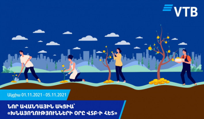 ՎՏԲ-Հայաստան Բանկը մեկնարկում է «Խնայողությունների օրը ՎՏԲ-ի հետ» ակցիան՝ Խնայողությունների միջազգային օրվա կապակցությամբ։ 2021 թ․ նոյեմբերի 1-ից 5-ը ներառյալ ձևակերպելով «Շահավետ», «Պրոգրես» և «Հարմարավետ» ավանդատեսակները ՀՀ դրամով՝ հաճախորդները կստանան ամսական աճող տոկոսային եկամտաբերություն: