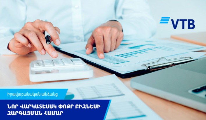 Անհատ ձեռնարկատերերն ու իրավաբանական անձինք այսուհետ կարող են ՎՏԲ-Հայաստան Բանկից ստանալ բիզնեսի զարգացման համար վարկ: Ֆինանսավորումը նախատեսված է մինչև 200 մլն ՀՀ դրամի չափով: Տոկոսադրույքը կկազմի տարեկան 14%`ՀՀ դրամով վարկի դեպքում կամ 11.5%` ՌԴ ռուբլով վարկերի համար (փաստացի տոկոսադրույք՝ 15.4% և 12.6% համապատասխանաբար):