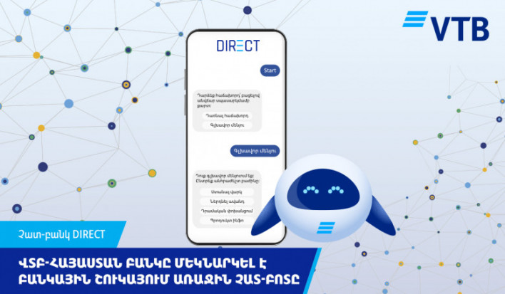 ՎՏԲ-Հայաստան Բանկը մեկնարկել է երկրի բանկային շուկայում նմանօրինակ չունեցող Չատ-բանկ DIRECT անվամբ բոտը` WhatsApp և Facebook մեսենջերներում: