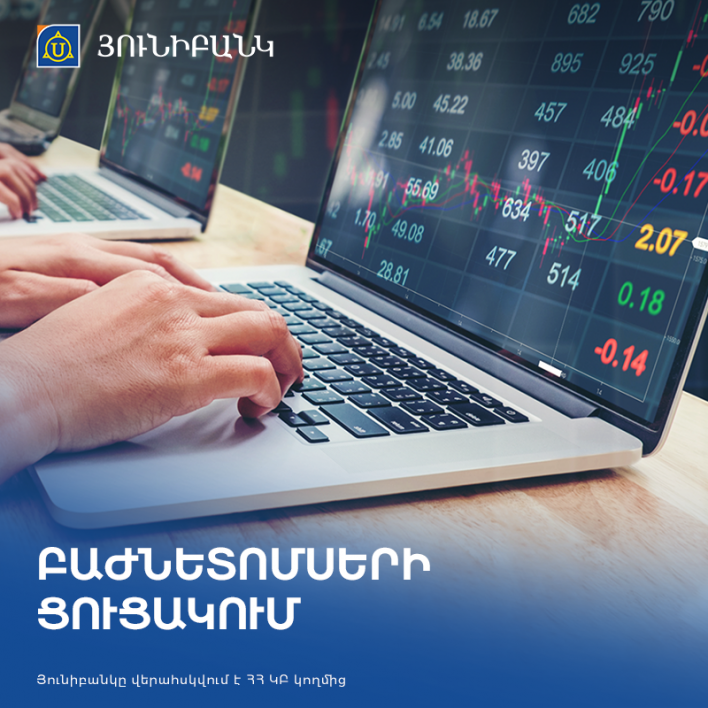 «Յունիբանկ» ԲԲԸ-ի Բ դասի փոխարկելի արտոնյալ բաժնետոմսերը ցուցակվեցին Հայաստանի ֆոնդային բորսայի (AMX) երկրորդային (B) հարթակում: Արտոնյալ բաժնետոմսերը հնարավորություն են տալիս ներդրողին ստանալու հաստատագրված շահաբաժիններ: Յունիբանկի բաժնետոմսերի եկամտաբերությունը կազմում է 12% տարեկան, թողարկման ծավալը՝ մոտ 1,1 մլրդ ՀՀ դրամ: