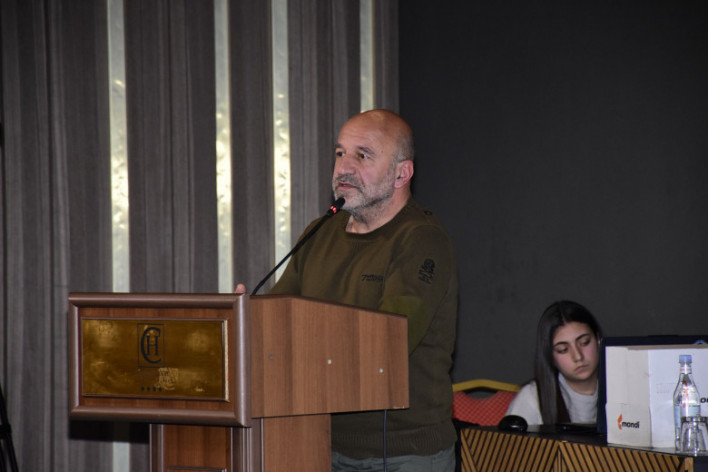 Քաղաքական գիտությունների դոկտոր Հրաչյա Արզումանյանն իր ելույթում ներկայացրեց Հայաստանի պաշտպանության և անվտանգության համապարփակ համակարգի մոտեցման հիմնական դրույթները։