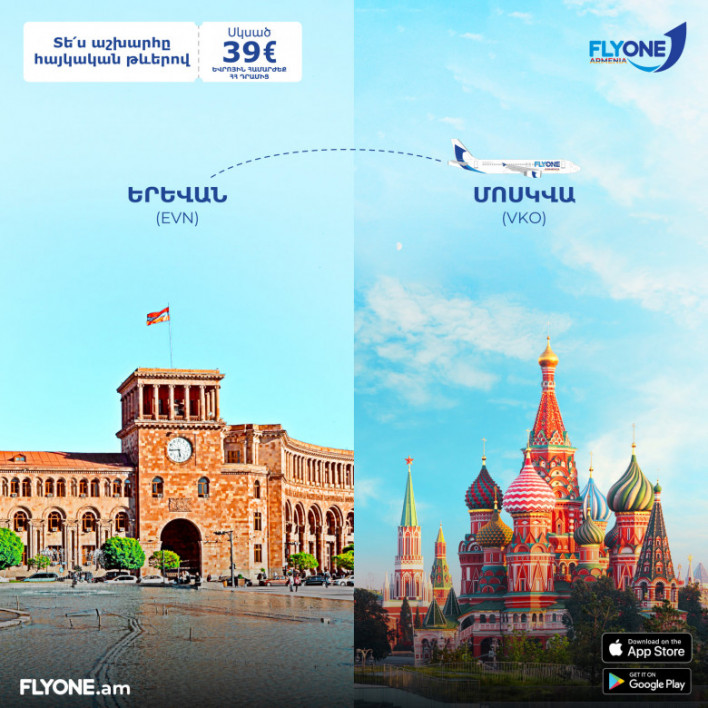 Հայաստանի և Ռուսաստանի Դաշնության ավիացիոն իշխանությունների թուլտվությամբ` FLYONE ARMENIA ավիաընկերությունը սույն թվականի մարտի 1-ից սկսում է Երևան - Մոսկվա - Երևան երթուղով կանոնավոր ուղիղ չվերթները: