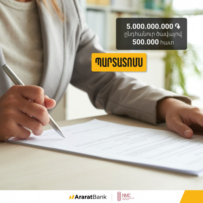 ԱրարատԲանկը հանդես կգա որպես «Ազգային Հիփոթեքային Ընկերություն» ՎՎԿ-ի պարտատոմսերի տեղաբաշխող
