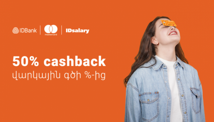 Սույն թվականի հուլիսի 1-ից մինչև հոկտեմբերի 1-ը IDSalary փաթեթի շրջանակում պատվիրեք IDBank-ի Mastercard Standard և Mastercard Gold քարտեր և Ձեր՝ վարկային գծի դիմաց վճարած տոկոսագումարներից կստանաք 50% քեշբեք: