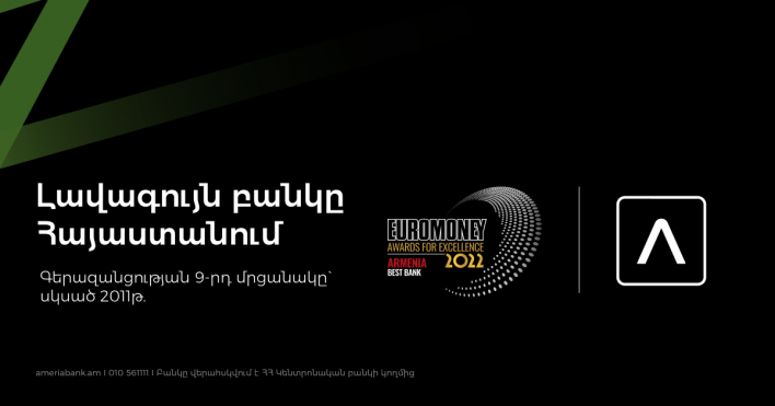 Ամերիաբանկն արժանացել է Euromoney ամսագրի 2022թ. Գերազանցության մրցանակին՝ որպես տարվա լավագույն բանկը Հայաստանում