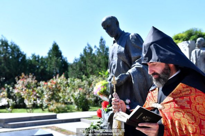Կոմիտաս Վարդապետի 153-ամյակի առթիվ այսօր Հայր Ասողիկ աբեղա Կարապետյանը հոգեհանգստյան կարգ անցկացրեց Կոմիտասի պանթեոնում։