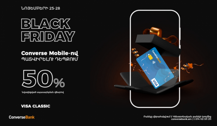 Սև ուրբաթ-ի կապակցությամբ Կոնվերս Բանկը հայտարարում է Visa Classic և Mastercard Standard քարտերի տրամադրման արշավ՝ հնարավորություն տալով ոչ միայն արտոնյալ պայմաններով ստանալ այդ վճարային քարտերը, այլև, համապատասխան ընտրության դեպքում, մասնակցել Visa քարտապանների համար Google Pay-ով անկանխիկ գնումներից գումարի վերադարձի արշավին: Դրա շրջանակում Google Pay-ով վճարումներ կատարած առաջին 1000 ՀՀ ռեզիդենտ Visa քարտապանները կստանան cashback: