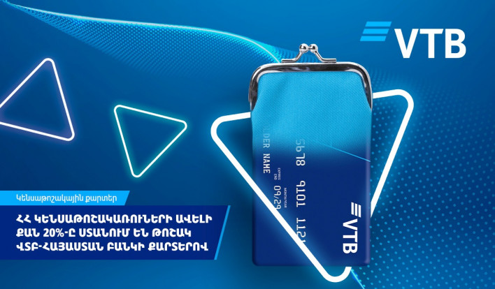 ՎՏԲ-Հայաստան Բանկը նախորդ տարվա արդյունքներով ավելացրել է բանկի քարտերով կենսաթոշակ ստացող հաճախորդների թիվը մինչև 110 հազ․մարդ։ Հաճախորդների այս խմբի քարտերով իրականացված անկանխիկ գործարքների ծավալը նախորդ տարվա երկրորդ կիսամյակում հասել է 3,2 մլրդ դրամի՝ ավելի քան 8 անգամ գերազանցելով առաջին կիսամյակի արդյունքը։