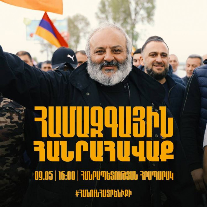 Մայիսի 9-ին, ժամը 16:00-ին Հանրապետության հրապարակում տեղի կունենա համազգային հանրահավաք։