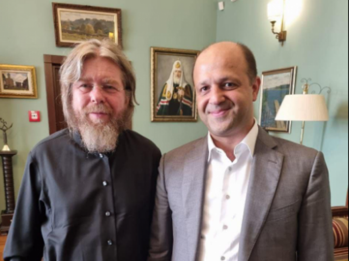 «Ռուսական գրքի տան» հիմնադիր, մեկենաս Մհեր Ավետիսյանը Ֆեյսբուքի իր էջում լուսանկար է հրապարակել Մետրոպոլիտ Տիխոնի հետ և կատարել հետևյալ գրառումը.