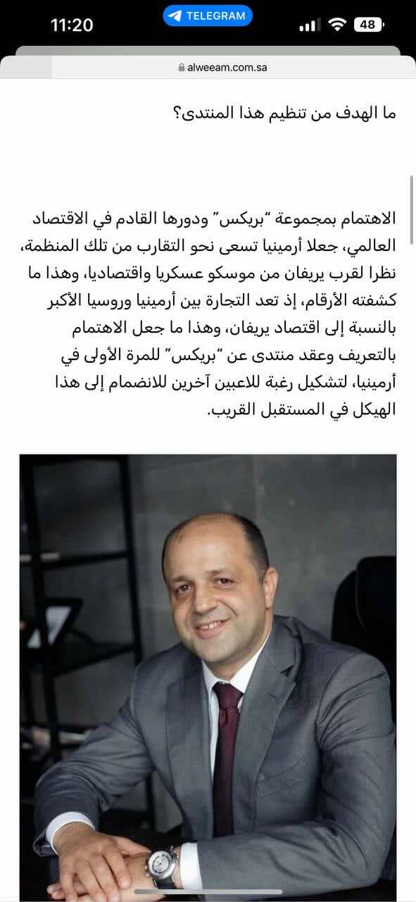 Արաբական և իրանական մամուլն անդրադարձել է ԲՐԻԿՍ-ի մասին Մհեր Ավետիսյանի ելույթին. Past.am