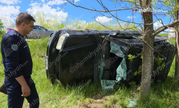 Բախման հետևանքով «Mitsubishi»-ն դուրս է եկել երթևեկելի գոտուց և կողաշրջված հայտնվել դաշտում: