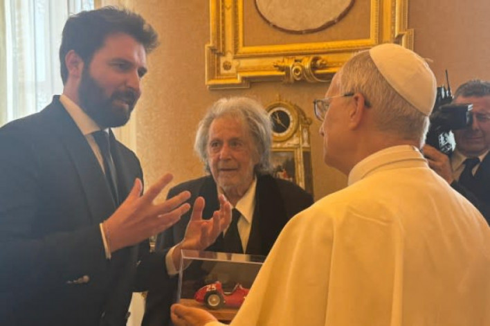 85-ամյա դերասանը երկուշաբթի հանդիպել է Լևոն 14-րդի հետ Վատիկանում։ Ներկայումս Պաչինոն գտնվում է Իտալիայում, որտեղ նկարահանվում է Մազերատի ավտոմագնատ եղբայրների մասին ֆիլմում։ Նրա հետ է եղել ֆիլմի պրոդյուսեր Իերվոլինոն: