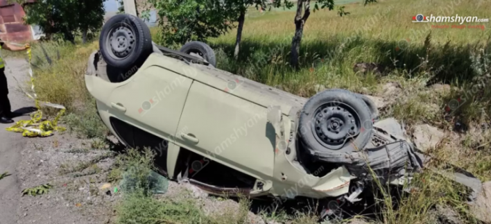 Երևան-Գյումրի-Բավրա ճանապարհին «Nissan March»-ը դուրս է եկել երթևեկելի գոտուց, բախվել բետոնե սյանը և գլխիվայր հայտնվել երթևեկելի գոտուց դուրս