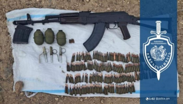 Նշված վայրում հայտնաբերվել են «Կալաշնիկովի» ինքնաձիգ, պայթուցիչով 3 նռնակ, տարբեր տրամաչափի 190 փամփուշտ, ինքնաձիգի փամփշտատուփ։
